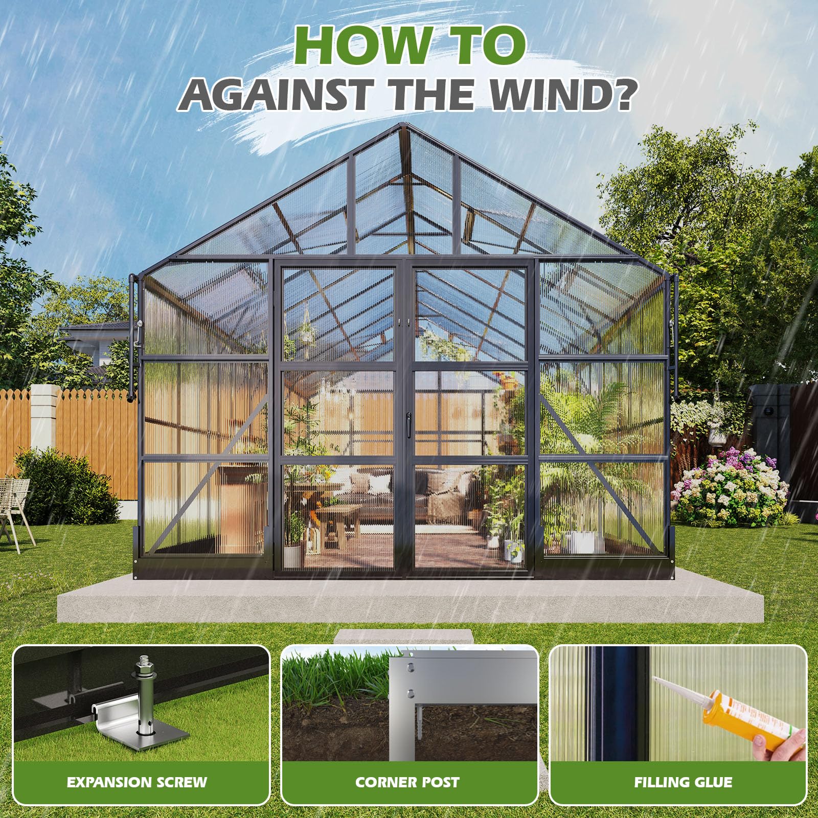 ✔ Ultra-Durable Construction – Aircraft-grade aluminum frame with reinforced corners, steel plates, and ground stakes for stability in concrete or soil.