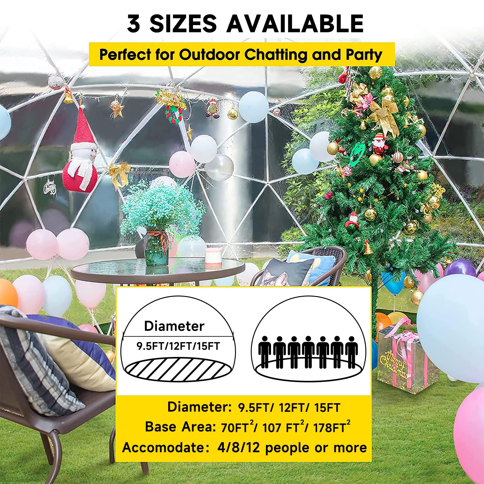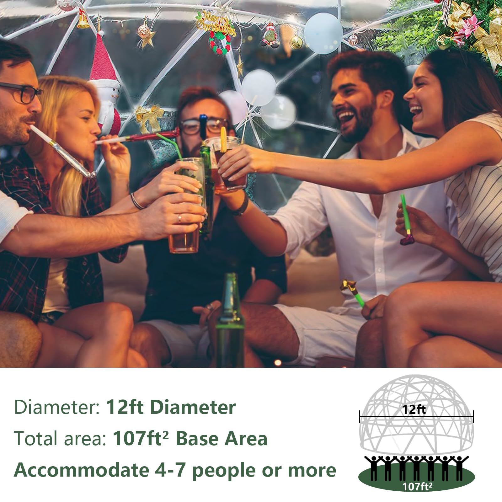 A 2-in-1 Wonderland for Plants & Parties! The Gaonala 12ft Bubble Tent Dome merges the best of both worlds: a spacious greenhouse for your plants and a starlit retreat for relaxation. Built with a durable ABS frame and thickened transparent PVC, this geodesic dome withstands 40mph winds and 110lbs of snow while offering 360° panoramic views of your garden or the night sky.