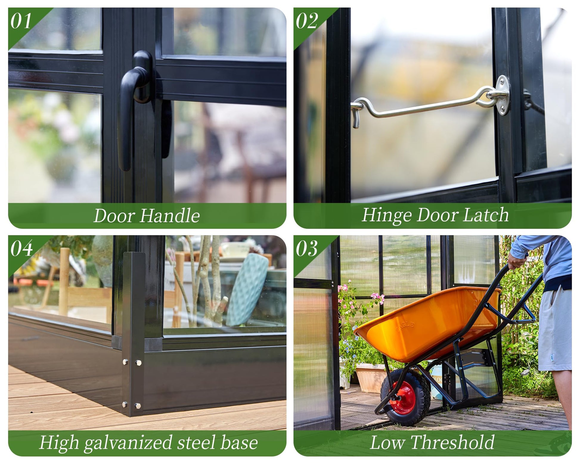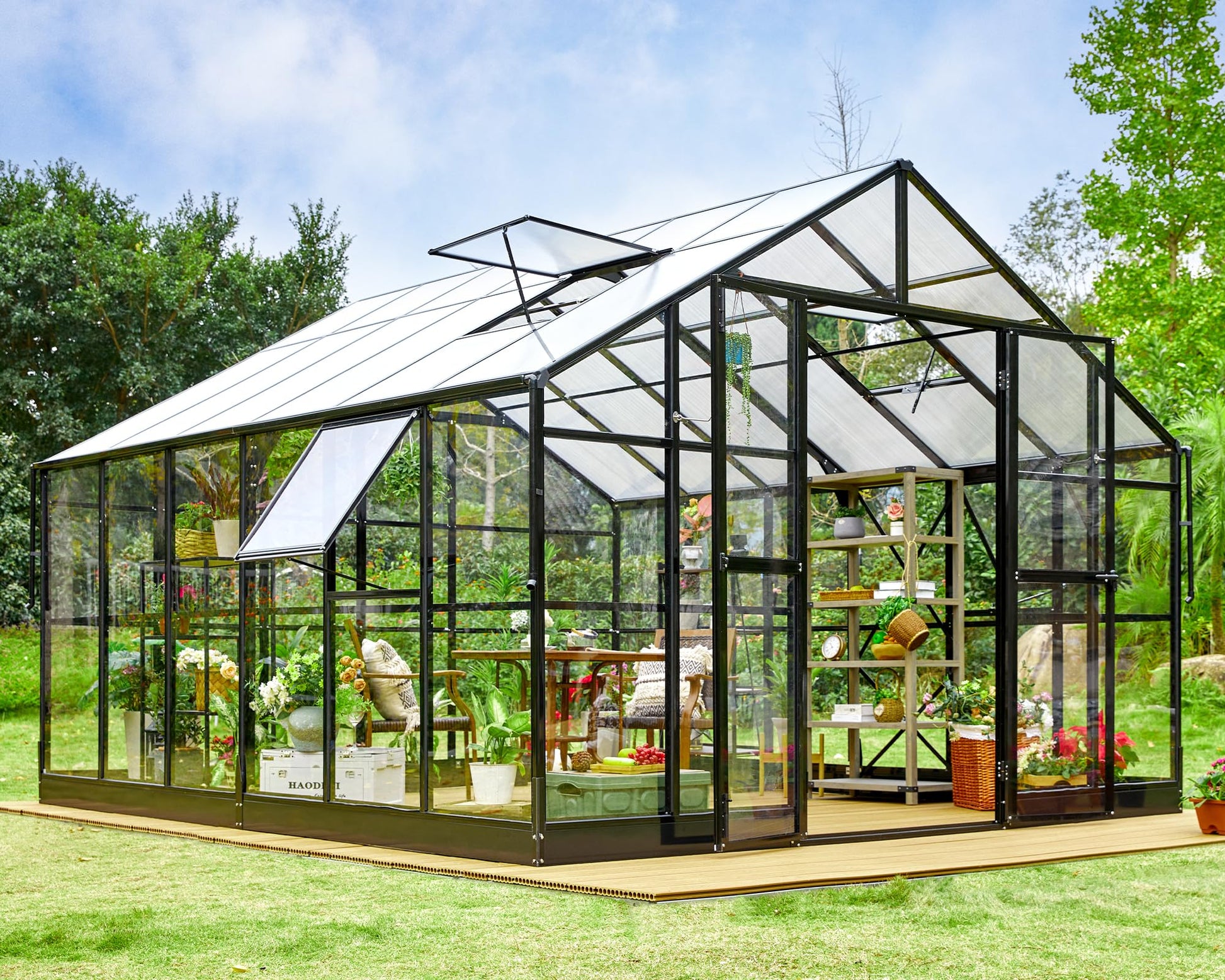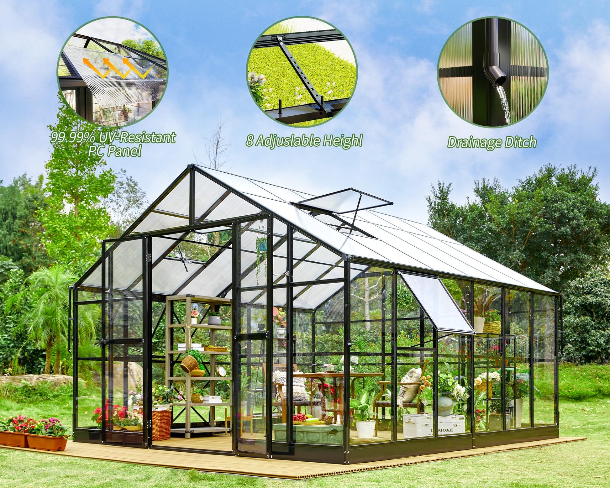 Revolutionary Quick-Connect Greenhouse – Assembles in 5 Hours! The Jocisland 12x13.5 FT Polycarbonate Greenhouse combines patented Quick Connect fittings with a heavy-duty aluminum frame for the fastest, sturdiest setup on the market. Featuring 6mm hybrid PC panels (99.99% UV blocking), 4 ventilation windows, and 6.7’ double doors, this greenhouse delivers professional-grade performance for serious gardeners.