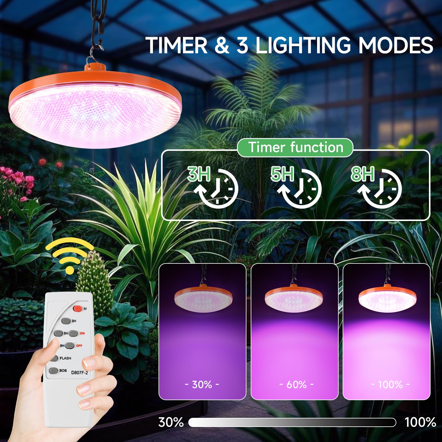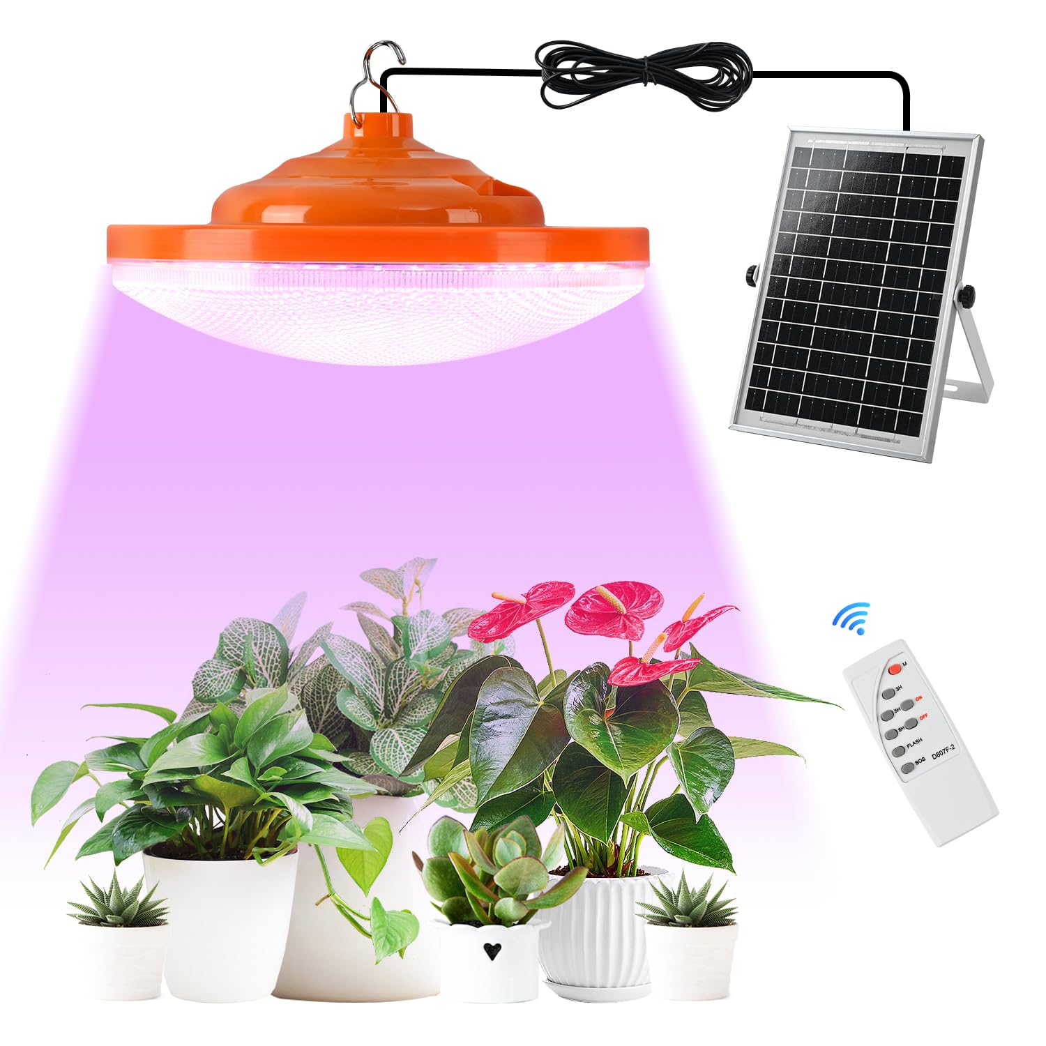 - 【Remote Control & Time Setting】The solar hanging plant light are easily controlled by a remote and the button on the top of the bulb. You can also set a timer for 3/5/8 hours and adjust 3 different brightness modes (30%, 60%, 100%) via the remote control. Meanwhile, excellent heat dissipation ensures plants don't get overheated when exposed to prolonged light, providing a safe environment for them.