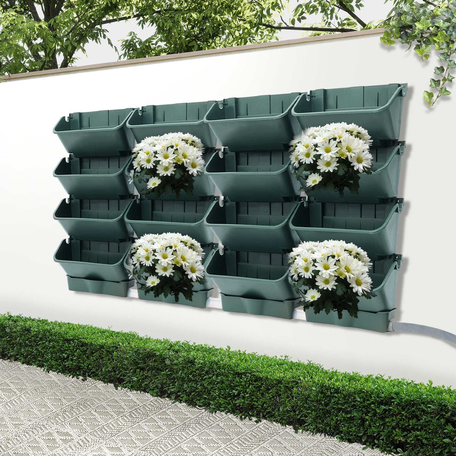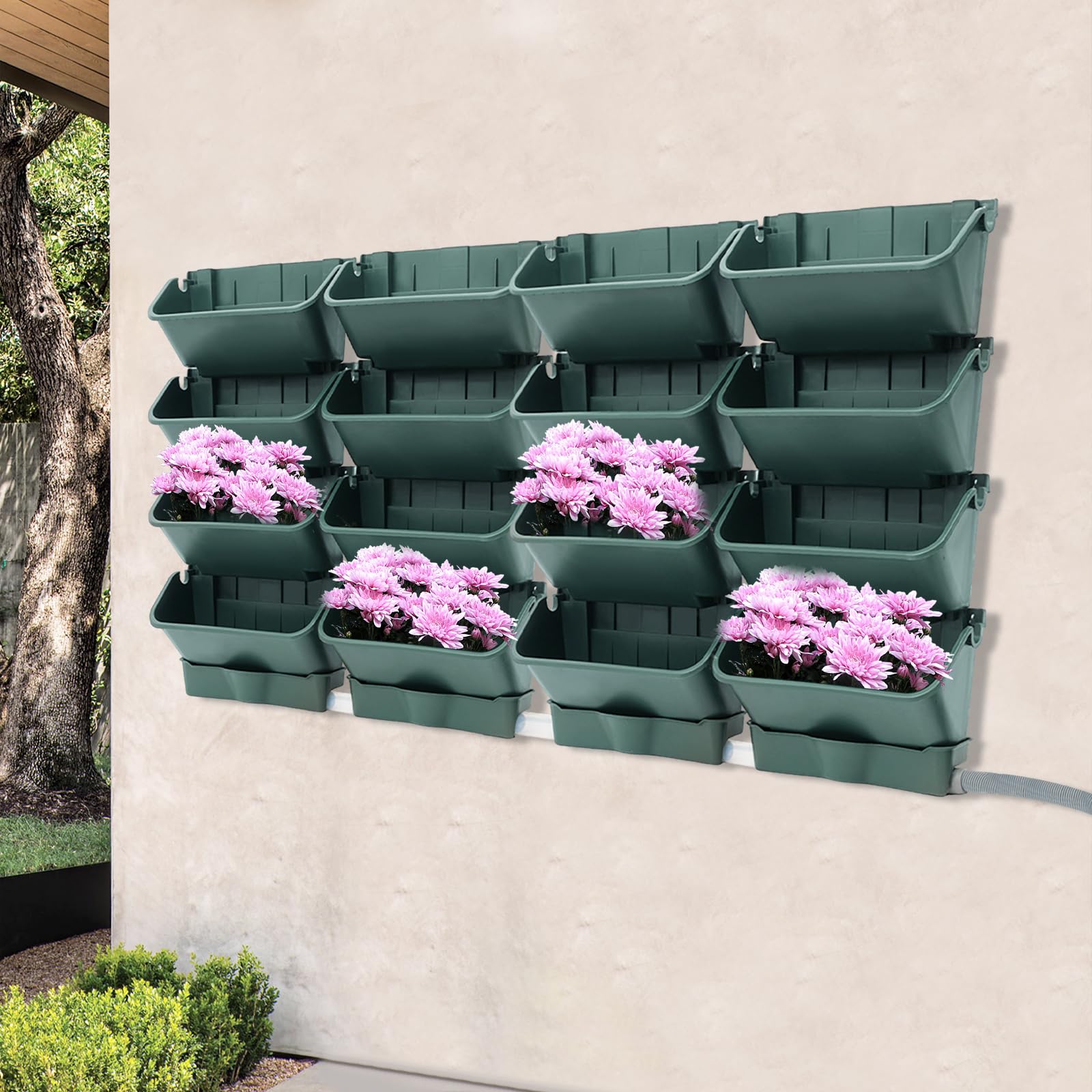 This stackable planter system features a built-in drip irrigation system that evenly distributes water from top to bottom, extending watering intervals and reducing daily maintenance. Each of the 16 pots includes drainage holes and holds up to 10.56 oz (300 ml) of water, promoting healthy root growth and preventing overwatering.