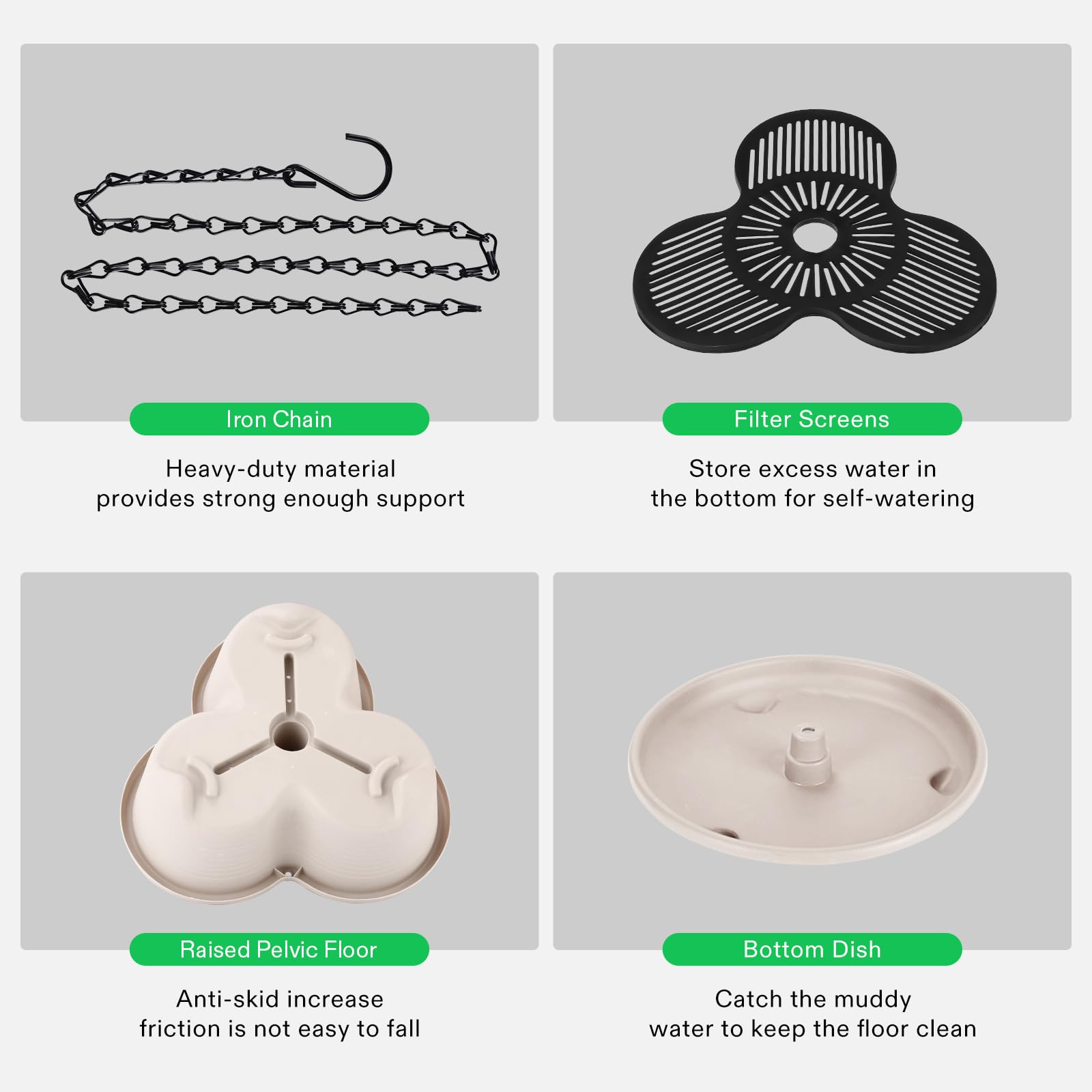 - Different Combinations: You can stack 2 or 3 or 4 tier; This planter can be hang with chains or used on a cylindrical rod